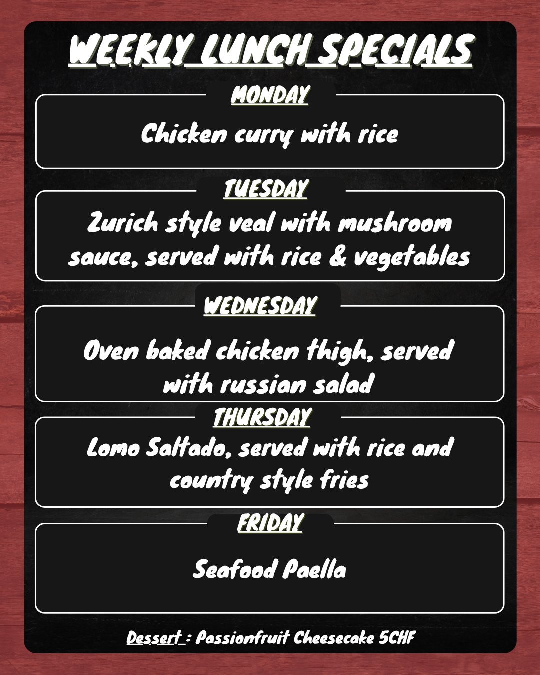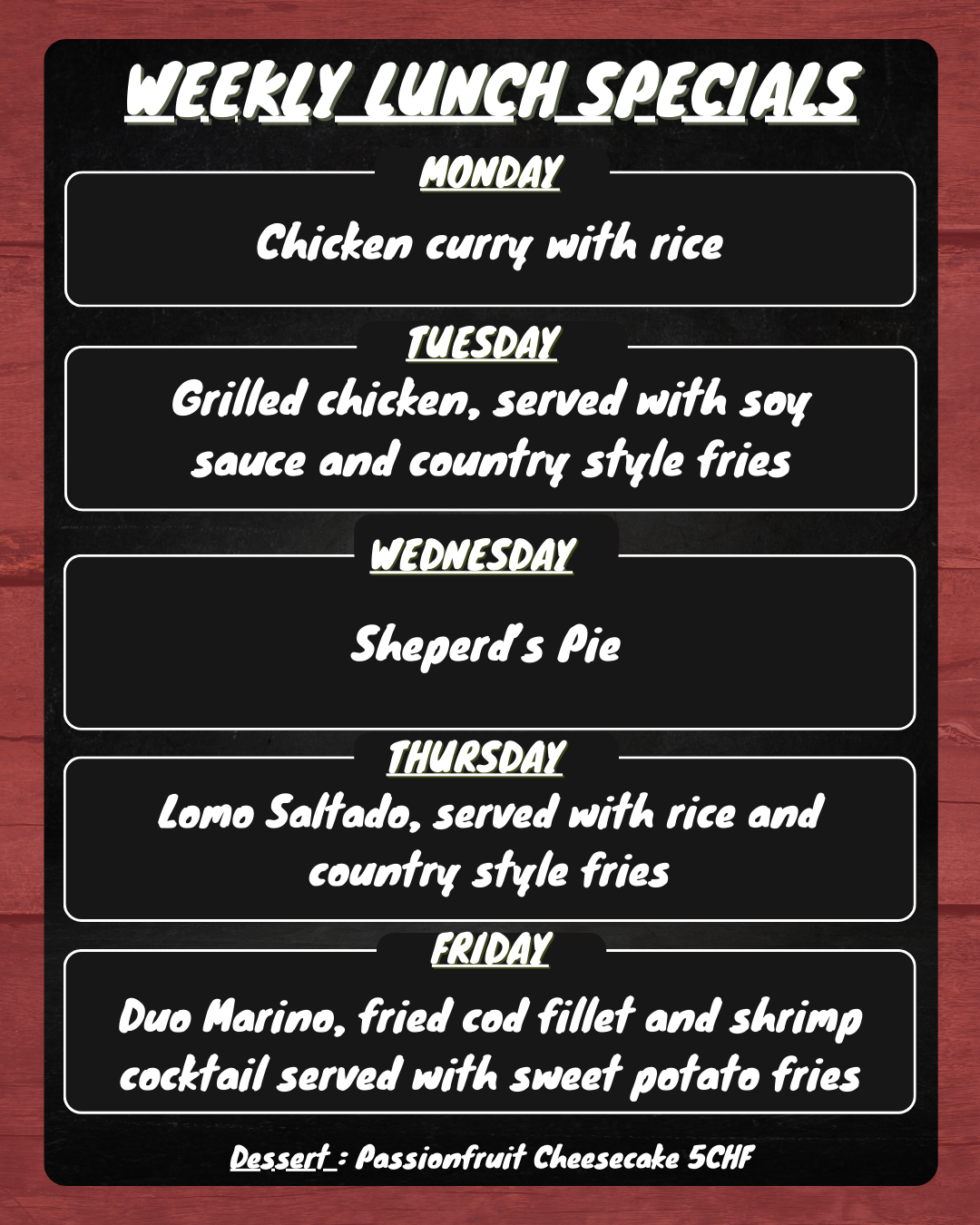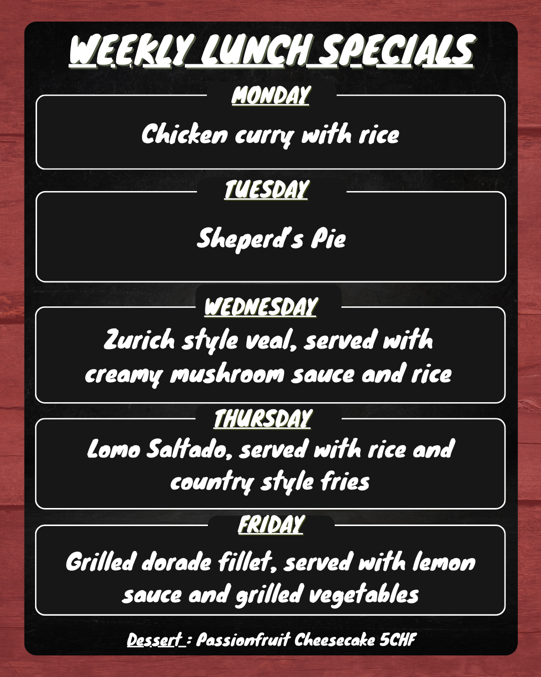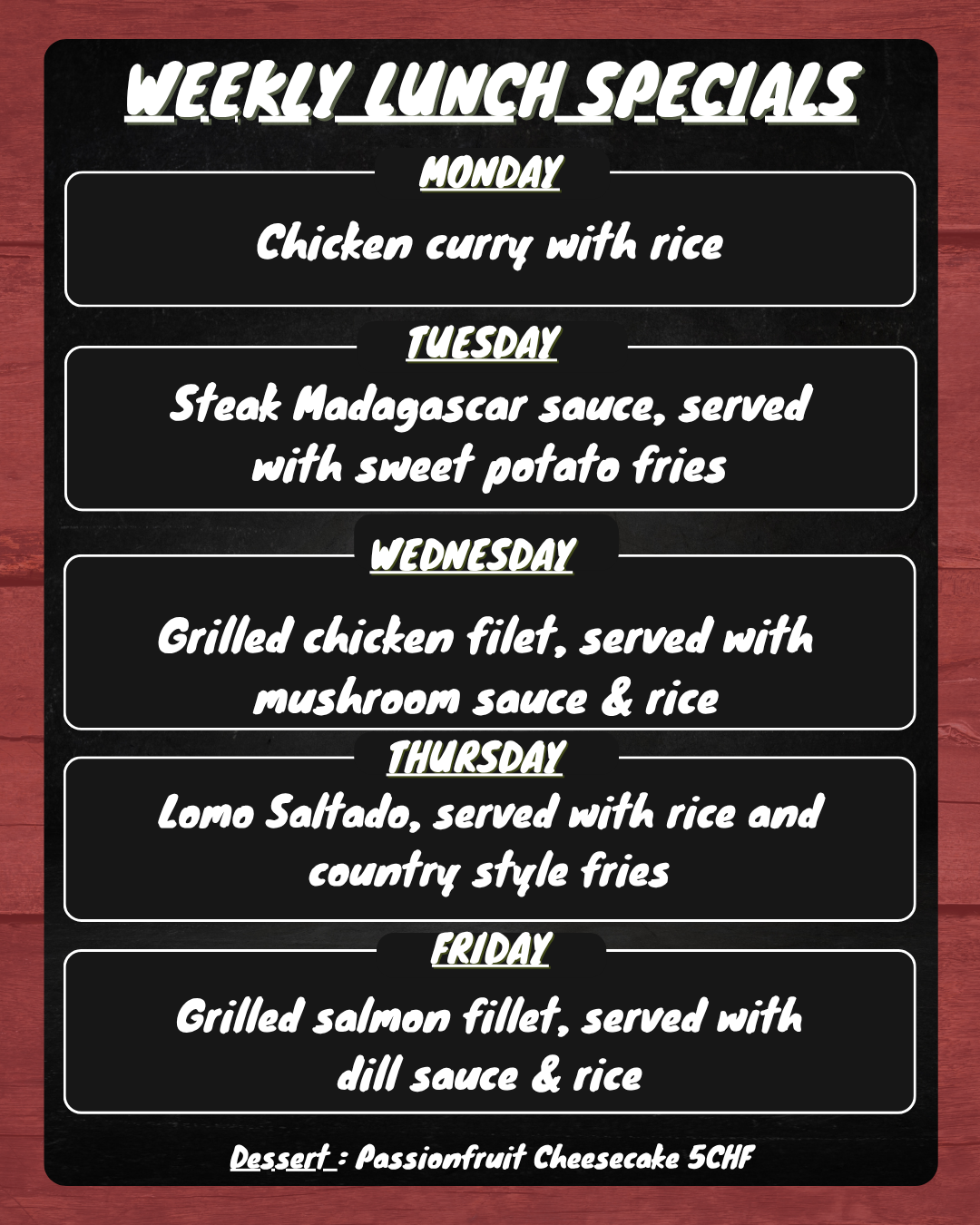 Sunday to Thursday (11h00 to 01h00)