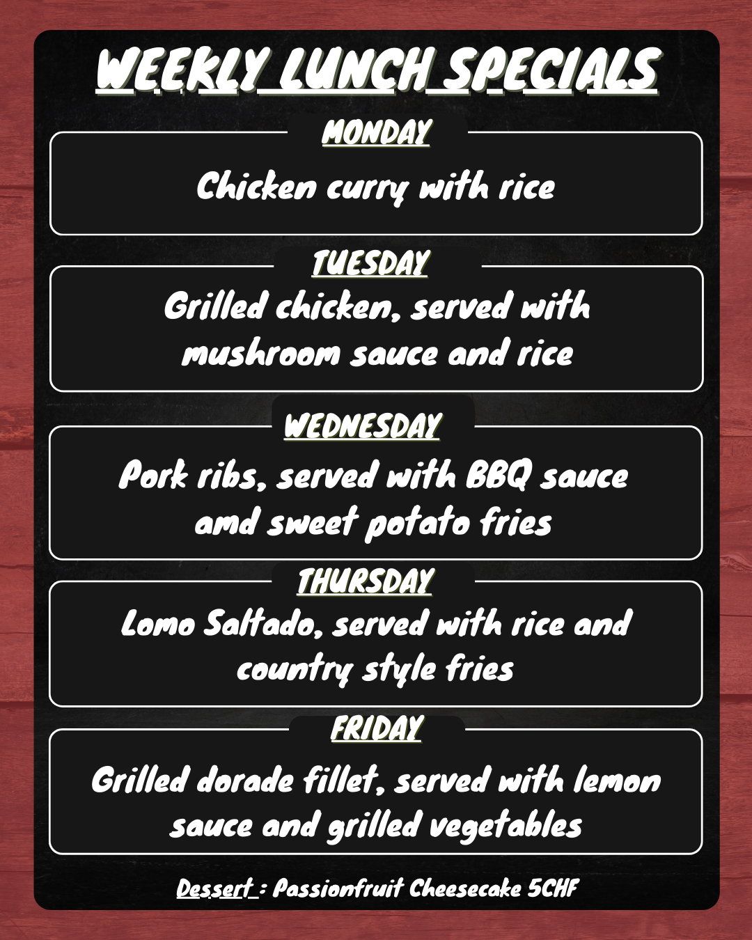 Sunday to Thursday (11h00 to 01h00)